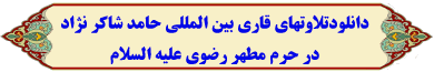 اختصاصی تنغیم / در این پست 8 تلاوت از حاج حامد شاکرنژاد تقدیم تان خواهیم کرد که همگی این تلاوتها را دوست عزیز برادر "محمد نیکخواه" در اختیارمان قرار داده اند . ضمن تشکر از ایشان از شما دعوت می کنیم در ادامه مطلب این تلاوتهای زیبا را که همگی در قم اجرا شده اند دانلود فرمایید ..